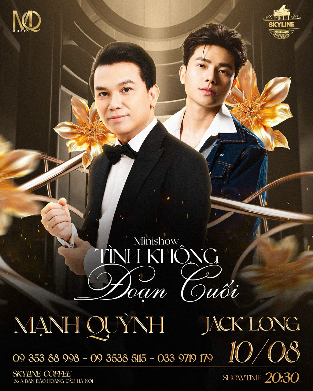 Giữa tiết trời Hà Nội, một đêm nhạc đậm chất trữ tình sẽ làm dịu mát trái tim những người yêu âm nhạc. Minishow “Tình Không Đoạn Cuối” là cuộc hội ngộ đặc biệt giữa ca sĩ Mạnh Quỳnh – biểu tượng nhạc vàng không tuổi và Jack Long – gương mặt trẻ đầy triển vọng với chất giọng tình cảm, sâu lắng.